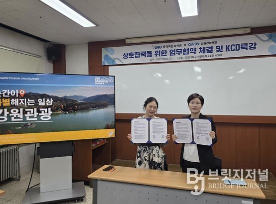브릿지저널 윤나영 기자 | 강원관광재단 글로벌마케팅실은 10월 1일 강원대학교 독어독문학전공과 글로벌 관광 전문 인재 양성을 위한 업무협약(MOU)을 체결했다.