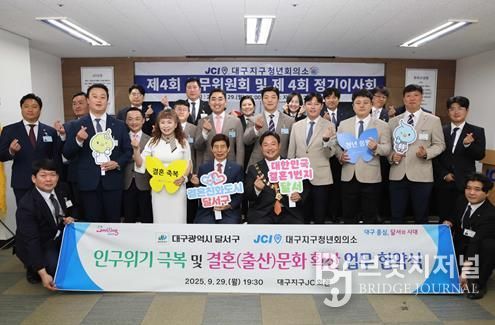 브릿지저널 김진석 기자 | 대구 달서구는 지난 29일 대구지구청년회의소(회장 이성범)와 초저출생 인구 위기 극복 및 긍정적 결혼문화 확산을 위한 업무협약을 체결했다.