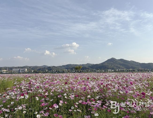 브릿지저널 정보영 기자 | 안동시 낙동강변 초화단지와 그라스원이 올가을에도 코스모스와 핑크뮬리 등 다채로운 가을꽃으로 물들며 시민과 관광객들의 발길을 사로잡고 있다.