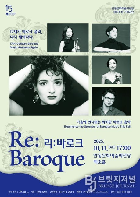 브릿지저널 정보영 기자 | 안동문화예술의전당은 다양한 장르의 특별기획공연으로 수준 높은 문화예술을 접할 수 있는 기회를 확대하고 있다. 10월 11일 금요일 오후 5시 안동문화예술의전당 백조홀에서는 'Re:baroque(리:바로크) 다시 깨어나는 바로크 음악' 무대가 열린다.