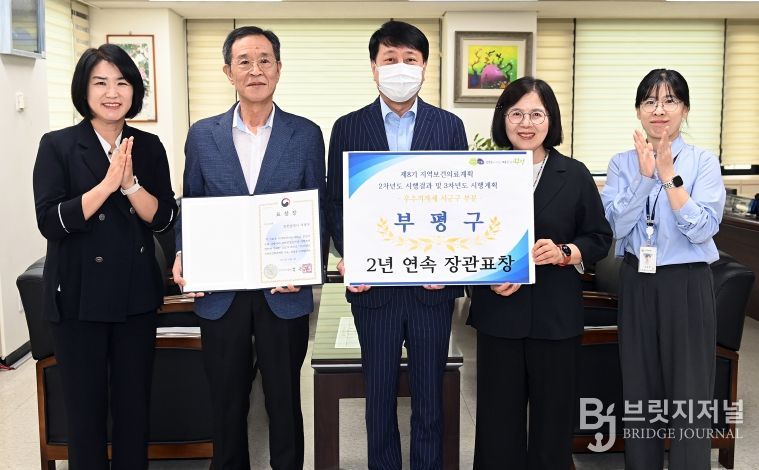 브릿지저널 김경미 기자 | 부평구는 보건복지부 주관 ‘2025년 지역보건의료계획 우수 지자체 평가’에서 시군구 부문 우수 기관으로 선정돼 보건복지부 장관 표창을 수상했다고 2일 밝혔다.