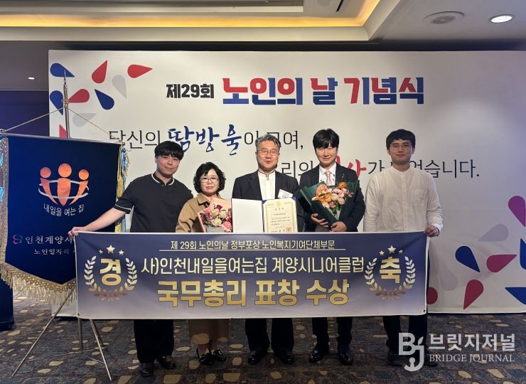 브릿지저널 김경미 기자 | 인천 계양구는 지난 2일 2025년 ‘노인의 날’을 맞아 노인복지 발전에 기여한 공로를 인정받아 인천계양시니어클럽(관장 손재오)이 국무총리 표창을 수상했다고 밝혔다.