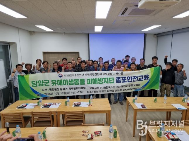 브릿지저널 김경미 기자 | 담양군은 지난 15일 에코교육관에서 유해야생동물 기동포획단을 대상으로 포획활동 시 준수사항과 총기사고 예방 등을 위한 안전교육을 진행했다.