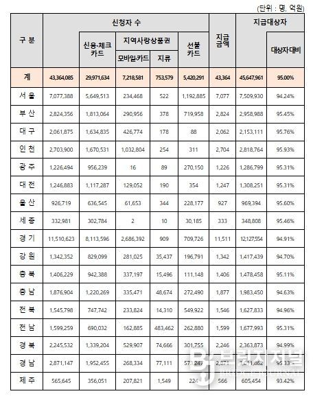 브릿지저널 정보영 기자 | 2차 민생회복 소비쿠폰 신청·지급 개시 이후 4주간(9.22(월)~10.19(일)) 지급대상자의 95.0%인 4천336만 명이 신청하고 4조 3천364억 원이 지급되어, 추석 연휴 간 오프라인 신청이 불가능했음에도 불구하고, 대다수 국민들이 소비쿠폰을 신청·지급받은 것으로 나타났다.(10.19. 24시 기준)