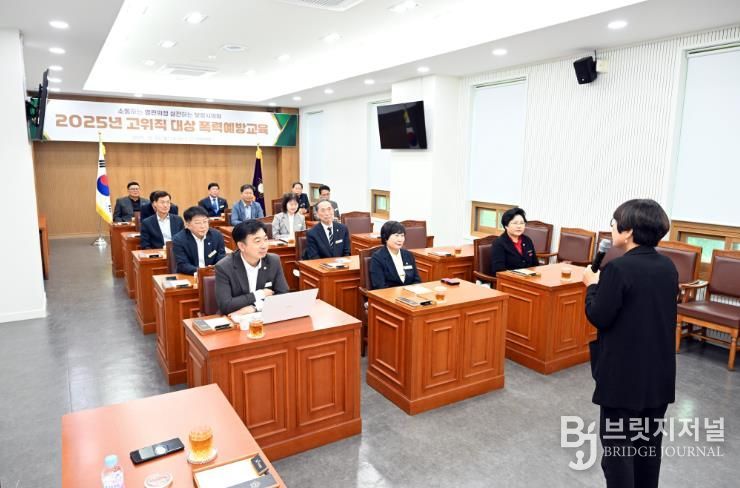 브릿지저널 정보영 기자 | 보령시의회는 20일 의회 1층 회의실에서 의원과 사무국장, 수석전문위원 등 고위직 15명을 대상으로 ‘2025년 고위직 대상 폭력예방교육’을 실시했다.