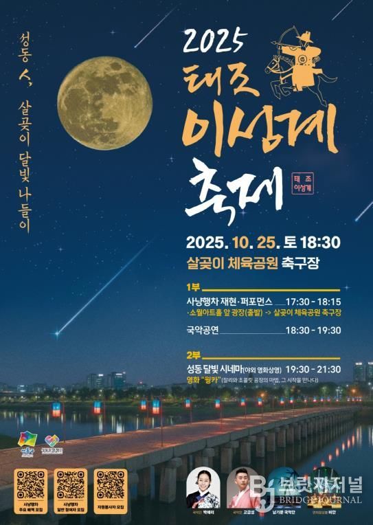 브릿지저널 김경미 기자 | 서울 성동구는 오는 10월 25일 살곶이 체육공원 일대에서 '2025년 태조 이성계 축제'를 개최한다고 밝혔다.