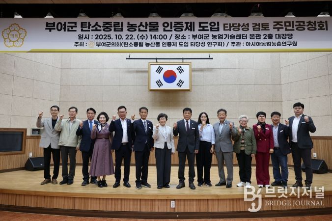브릿지저널 정보영 기자 | 부여군의회는 22일 부여군농업기술센터 대강당에서 ‘탄소중립 농산물 인증제 도입 타당성 검토’를 주제로 한 주민공청회를 개최했다.