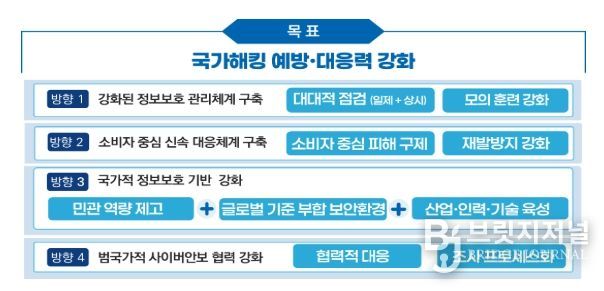 브릿지저널 김경미 기자 | 과학기술정보통신부와 관계부처는 전방위적인 해킹 사고로 국민 불안이 가속화되는 현 상황을 신속히 극복하고 국가 전반의 정보보호 역량을 강화하기 위해 '범부처 정보보호 종합대책'을 수립하여 10월 22일 대국민 브리핑을 통해 발표했다.