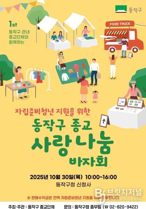 브릿지저널 김경미 기자 | 동작구가 종교 간 협력을 증진하고, 나눔 문화를 확산하기 위해 오는 30일 ‘제1회 동작구 종교 사랑나눔 바자회’를 개최한다고 밝혔다.