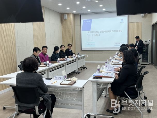 브릿지저널 김경미 기자 | 충북도는 24일 충북발달장애인지원센터 1층 회의실에서 발달장애인 전문기관 및 자문위원, 시군 담당자, 수행기관 등이 참석한 가운데 제2차 충청북도 발달장애인 지원 기본계획 수립용역 최종보고회를 개최했다고 밝혔다.
