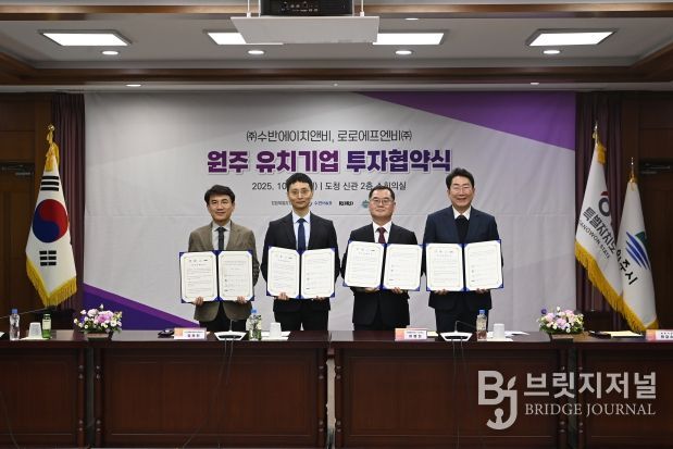 브릿지저널 윤나영 기자 | 원주시는 27일 오전 11시, 강원특별자치도청 신관 2층 소회의실에서 원강수 시장, 김진태 도지사, 이명심 로로에프엔비㈜ 상무이사, 정동인 ㈜수반에이치앤비 대표이사 등이 참석한 가운데 원주 공장 신설을 위한 투자협약을 체결했다.
