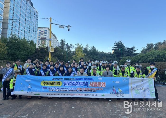 브릿지저널 김경미 기자 | 수원특례시는 27일 수원시청역 일원에서 ‘공유자전거·킥보드(PM) 지정주차구역 시범운영 홍보 캠페인’을 펼쳤다.