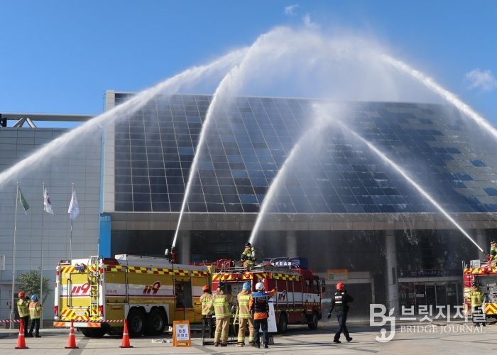 브릿지저널 김경미 기자 | 광명소방서는 27일 오후 2시, 광명시민체육관에서 광명시 주관으로 실시한 ‘2025년 재난대응 안전한국훈련’에 참여해 재난 대응 역량 강화를 위한 합동훈련을 실시했다.