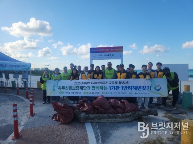브릿지저널 정보영 기자 | 제주신용보증재단은 지난 10월 24일, 제주시 구좌읍 김녕해수욕장에서 ‘1기관 1반려해변 갖기’ 지정 행사를 개최하고, 임직원이 참여하는 해양정화활동을 실시했다.