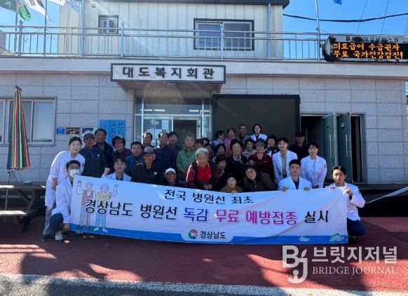 브릿지저널 김경미 기자 | 경상남도는 27일 의료 접근성이 낮은 도서 지역 주민의 감염병 예방과 건강 보호를 위해 지난해에 이어 올해도 병원선을 활용한 계절성 독감 무료 예방접종을 실시한다고 밝혔다.