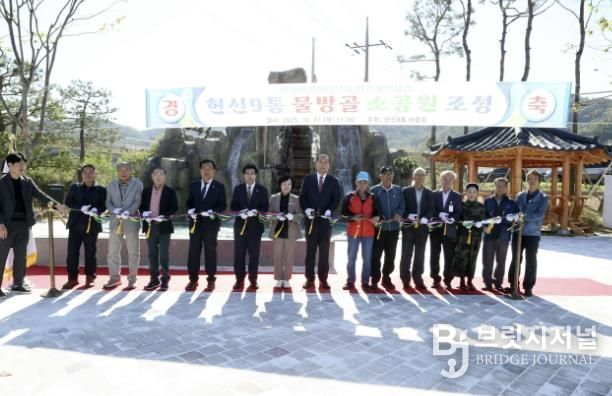 브릿지저널 정보영 기자 | 상주시 동문동에서는 10월 27일 11시 헌신9통 소공원(헌신동 260-13 일원)에서 강영석 상주시장, 지역구 시의원을 비롯한 동문동 기관단체장 등 마을주민 50여 명이 참석한 가운데 헌신9통 물방골 소공원 조성 준공식을 개최했다.