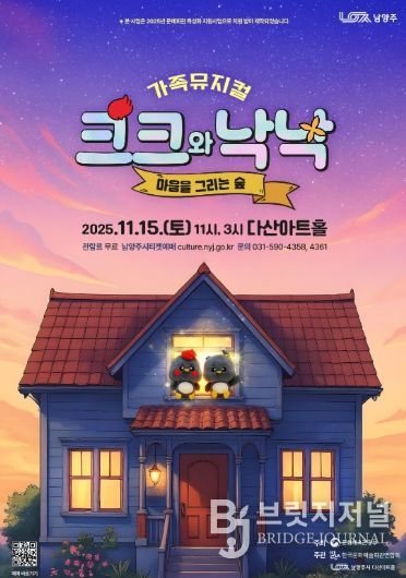 브릿지저널 김경미 기자 | 남양주시는 오는 11월 15일 다산아트홀에서 가족뮤지컬 ‘크크와 낙낙’을 선보인다고 28일 밝혔다.