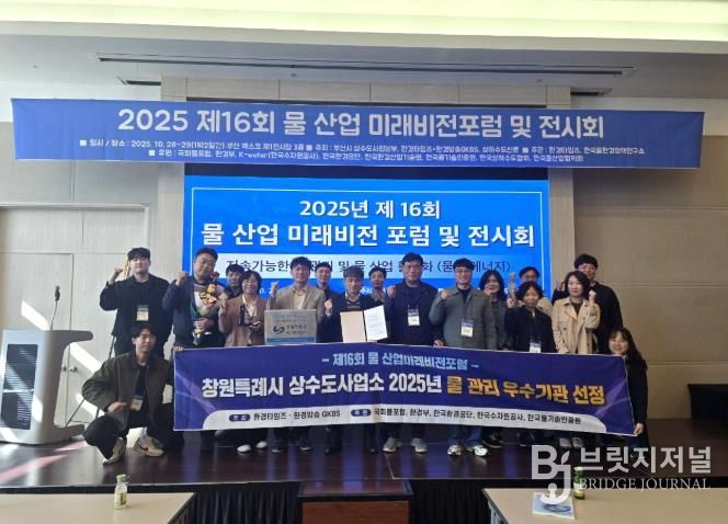 브릿지저널 김경미 기자 | 창원특례시가 28일 부산 벡스코 전시장에서 개최된 2025년 제16회 물 산업미래비전 포럼에서 ‘2025년 물 관리 우수기관’으로 선정돼 기관 표창을 받았다.