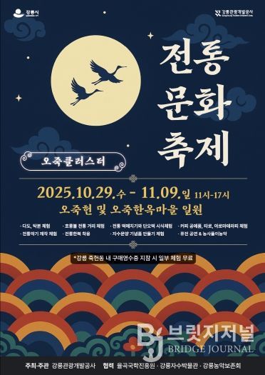 브릿지저널 윤나영 기자 | 강릉시와 강릉관광개발공사는 오는 10월 29일부터 11월 9일까지 오죽헌과 오죽한옥마을 일원에서 지역의 역사와 전통을 현대적으로 재해석한 『오죽클러스터 전통문화축제』를 개최한다.