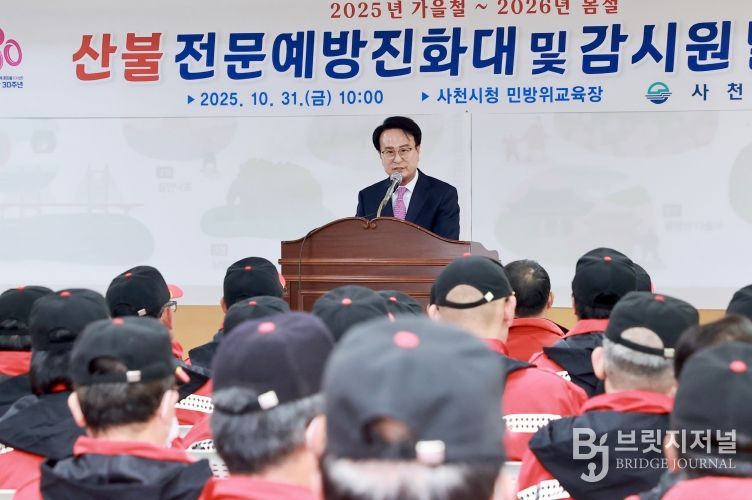 브릿지저널 김경미 기자 | 사천시는 ’25년 가을철 및 ’26년 봄철 산불조심 기간(2025.11.1. ~ 2026.5.15.)을 맞아 10월 31일 민방위교육장에서 산불전문예방진화대와 산불감시원 및 시와 산불관계자 150여명이 참석한 가운데 발대식을 가지고 “결의문 낭독”을 통해 산불예방과 진화 활동의 최일선에서 최선을 다하기로 다짐했다고 밝혔다.