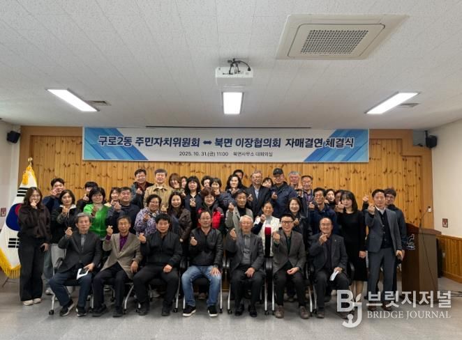 브릿지저널 윤나영 기자 | 서울특별시 구로구 구로2동 주민자치위원회와 강원특별자치도 영월군 북면 이장협의회는 2025년 10월 31일 북면사무소에서 자매결연식을 갖고, 도시와 농촌이 함께 성장하는 교류협력의 새로운 출발을 알렸다.