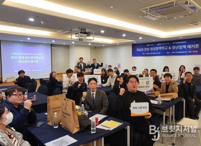 브릿지저널 김경미 기자 | 창원청년비전센터는 1일 그랜드시티호텔 창원에서 열린 ‘2025 창원 청년정책학교 & 해커톤’을 성황리에 마무리했다고 밝혔다. 이번 행사는 창원 청년 네트워크가 기획했으며, 지역 청년 약 30명이 9개 팀으로 참여해 청년의 눈으로 본 현실적 정책 아이디어를 제시했다.