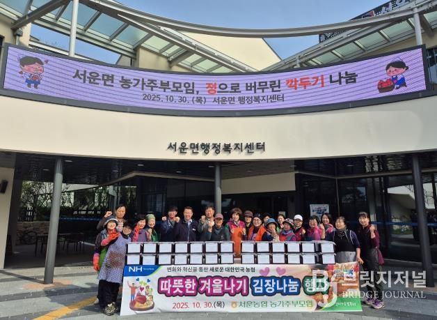 브릿지저널 김경미 기자 | 10월 30일 서운면 농협 농가주부모임은 지역 내 어려운 이웃들을 위한 ‘따뜻한 겨울나기 김장 나눔 행사’를 실시했다.