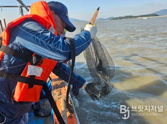브릿지저널 김경미 기자 | 영광군은 지난 10월 24일 염산면 칠산해역 일원에 어린 참꼬막 종자 137만 마리를 방류했다.