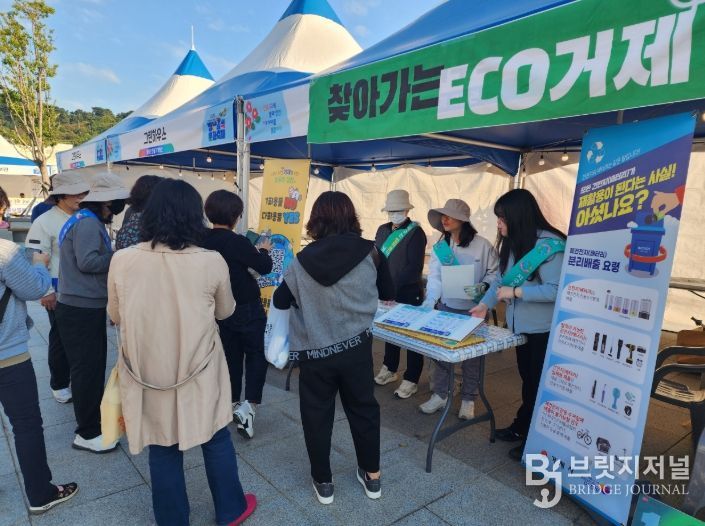 브릿지저널 김경미 기자 | 거제시는 지난 31일 거제시에서 개최한 2025 경남음식문화축제 행사장을 찾아 친환경 팝업 홍보 부스 ‘찾아가는 ECO 거제’를 운영했다.