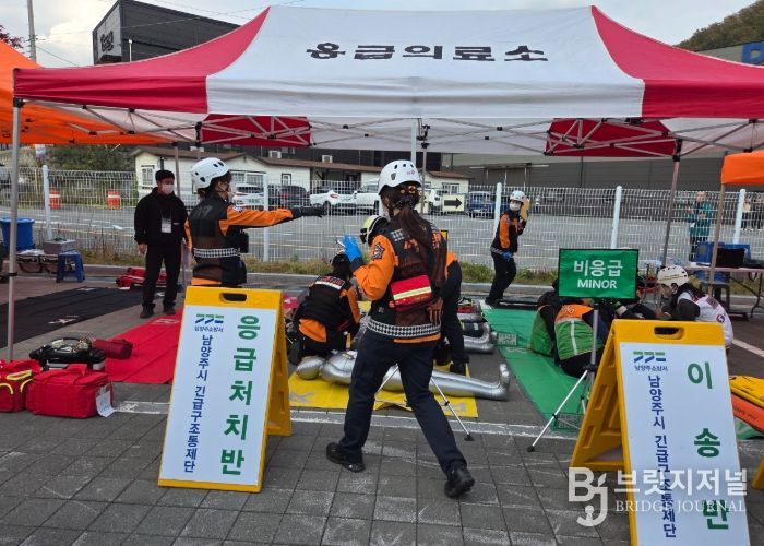브릿지저널 김경미 기자 | 남양주시는 10월 31일 수동면 오뚜기물류서비스남양주 안전물류센터에서 실시된 2025년 재난대응 안전한국훈련에 참여해 ‘현장응급의료소’를 설치·운영했다고 밝혔다.