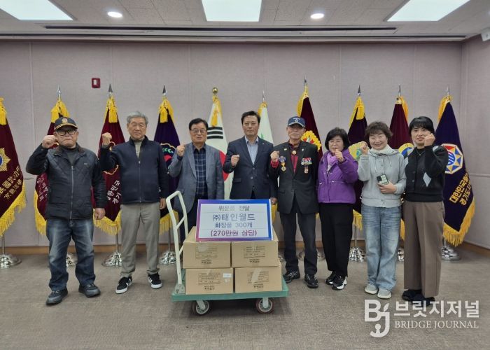 브릿지저널 김경미 기자 | ㈜태인월드가 지난 10월 30일, 양주시 보훈단체에 화장품 300개(총 270만 원 상당)를 기부했다.
