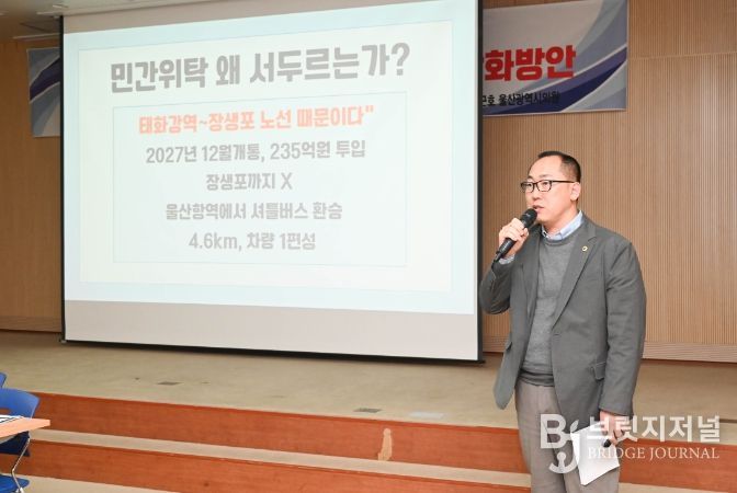 브릿지저널 윤나영 기자 | 울산광역시의회 손근호 의원(산업건설위원회)은 3일 오후 의회 3층 회의실에서 진보당과 시민연대와 공동으로 울산의 공공교통 전환 토론회를 개최했다.