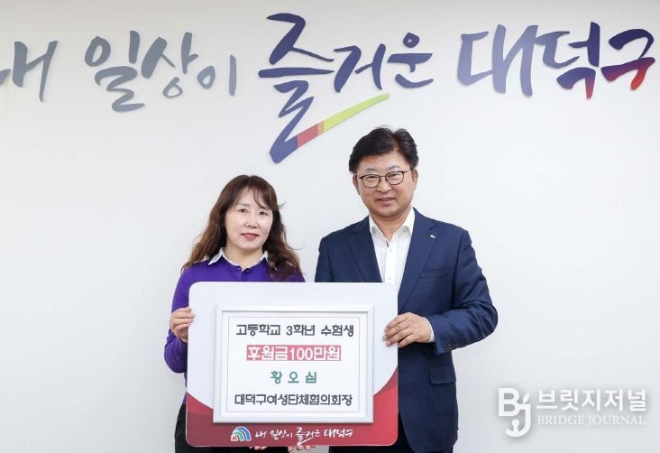 브릿지저널 정보영 기자 | 대전 대덕구는 3일 구민의 사랑방에서 황오심 대덕구여성단체협의회장이 지역 내 한부모 가정 고3 수험생 지원을 위해 후원금 100만원을 기탁했다고 밝혔다.