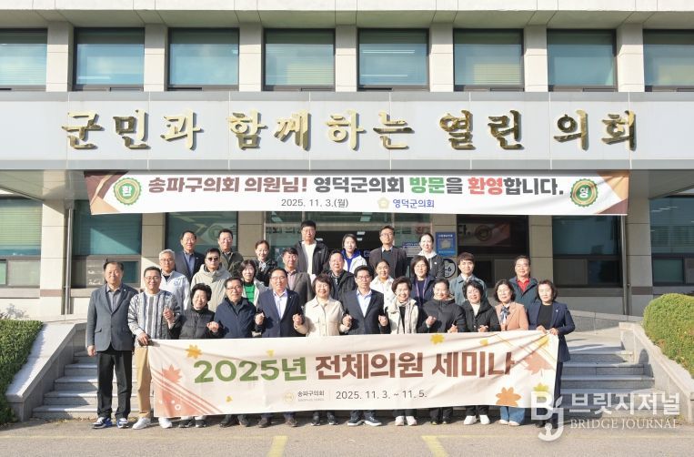 브릿지저널 정보영 기자 | 영덕군의회는 11월 3일, 자매도시인 송파구의회(의장 이혜숙) 연수 방문단을 맞이했다. 이번 방문은 지난 3월 대형 산불로 영덕군의 피해가 컸던 당시, 김성호 의장이 직접 송파구의회를 방문해 피해 상황을 설명하고 영덕 관광 활성화를 위해 각종 연수와 세미나를 영덕에서 개최해 줄 것을 요청한 것이 계기가 됐다.
