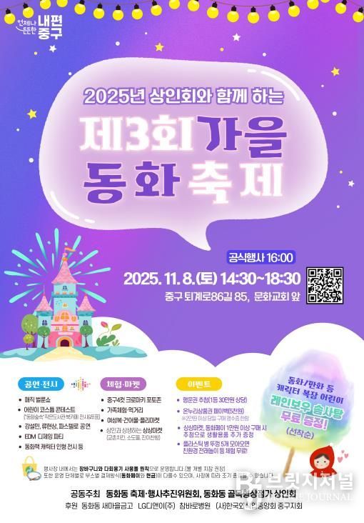브릿지저널 김경미 기자 | 서울 중구 동화동 문화교회(퇴계로86길 85) 일대가 오는 11월 8일 오후 2시 30분부터 6시 30분까지 ‘제3회 상인회와 함께하는 가을동화축제’로 들썩인다.
