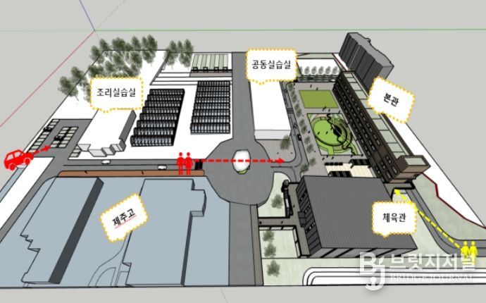 학교는 지상 3층 규모의 모듈러 교실, 다목적체육관, 4동의 실습동으로 구성되며 학교 신설에 따라 다목적체육관 및 급식소 증축, 어울림마당과 운동장 조성, 실습실 리모델링도 추진된다.
