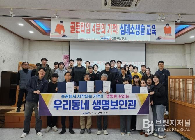 브릿지저널 김경미 기자 | 진도군은 지난 10월 29일에 진도군보건소에서 응급환자 발생 시 신속하게 대응할 수 있도록 심폐소생술(CPR) 교육을 진행하고, 교육 수료자를 ‘우리동네 생명보안관’으로 위촉했다.