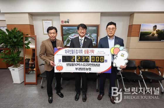 브릿지저널 김경미 기자 | 김해시는 4일 부경양돈농협에서 외국인근로자 월드컵대회에 223만원 상당의 생필품을 기탁했다고 밝혔다.
