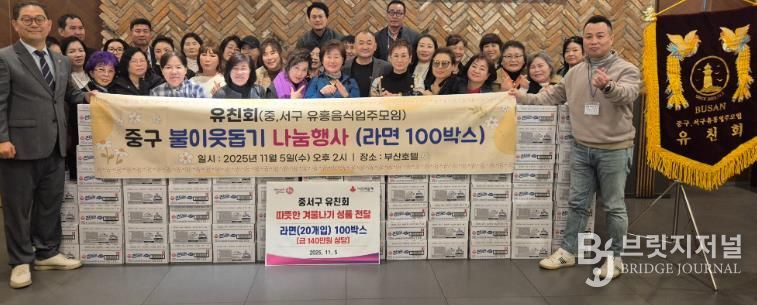 브릿지저널 윤나영 기자 | 지난 5일 유친회에서 부산 중구에 동절기 대비 취약계층 대상으로 라면 100박스를 기부하는 나눔활동을 진행했다.