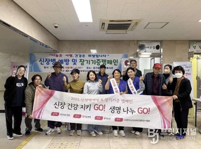 브릿지저널 김경미 기자 | 사단법인 한국신장장애인협회 경기협회 광주지부는 지난 6일 광주시노인복지관에서 ‘나눔은 사랑, 건강은 희망입니다’라는 주제로 신장병 예방 및 장기기증 캠페인을 성황리에 개최했다.