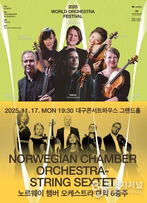 브릿지저널 김진석 기자 | (재)대구문화예술진흥원 대구콘서트하우스는 오는 11월 17일 저녁 7시 30분, 그랜드홀에서 2025 월드오케스트라페스티벌’의 하나로 노르웨이 챔버 오케스트라 공연을 개최한다.