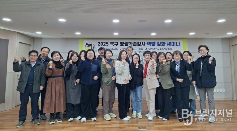 브릿지저널 김진석 기자 | 대구 북구청은 11월 10일 대구과학대학교 LIS 국제 세미나실에서 '2025 북구 평생학습강사 역량강화 세미나'를 열고, 지역 평생학습 강사 30여 명을 대상으로 ‘생성형 AI 활용 및 교수기법’ 연수를 실시했다.