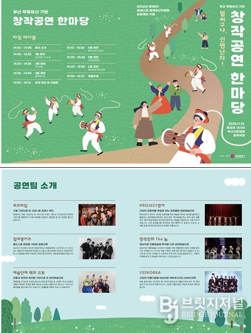 브릿지저널 윤나영 기자 | 부산시는 오는 15일 오후 2시 부산시민공원 흔적극장에서 부산 무형유산의 새로운 활용 방향을 모색하는'2025 제2회 무형유산 기반 창작공연 한마당'을 개최한다고 밝혔다