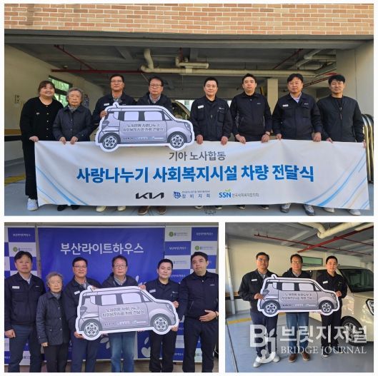 브릿지저널 윤나영 기자 | 기아(주) 부산서비스센터(센터장 최동창)와 노동조합(분회장 이동근)은 장애인거주시설 부산라이트하우스(원장 이준혁)을 방문해 레이차량 1대(2천만원 상당)을 전달하며 ‘사랑나누기 레이차량증정식‘을 진행했다.