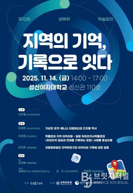 브릿지저널 김경미 기자 | 오는 11월 14일 금요일, 성북구청이 주최하고 성북문화원·성신여자대학교 공공역사연구소가 주관하는 제10회 성북학 학술회의 ‘지역의 기억, 기록으로 잇다’가 성신여자대학교 성신관 110호에서 오후 2시부터 5시까지 개최된다.