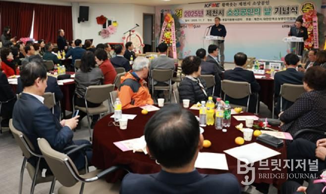 브릿지저널 김경미 기자 | 제천시소상공인연합회는 지난 7일 제천시 종합자원봉사센터 2층에서 2025년 소상공인의 날 기념식을 개최했다.