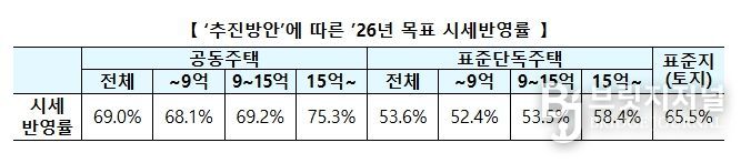 국토교통부 김윤덕 장관은 “현재 67개 제도에 활용되는 공적 기준가격인 부동산 공시가격은 국민 생활과 매우 밀접”하다고 하면서, “‘26년도 부동산 공시가격에 적용되는 시세반영률은 현재 수준으로 유지하되, 시세 산정의 정밀성도 높여, 부동산 시세 변동을 정확히 반영할 수 있도록 노력하겠다.”라고 밝혔다.