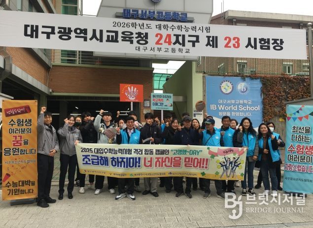 브릿지저널 김진석 기자 | 대구 서구 청소년지도협의회(회장 황만태)는 지난 12일, 서부고등학교 정문에서 학생들의 수능 예비 소집일 시간에 맞춰 수험생 응원 및 선도·보호 합동 캠페인을 실시했다.
