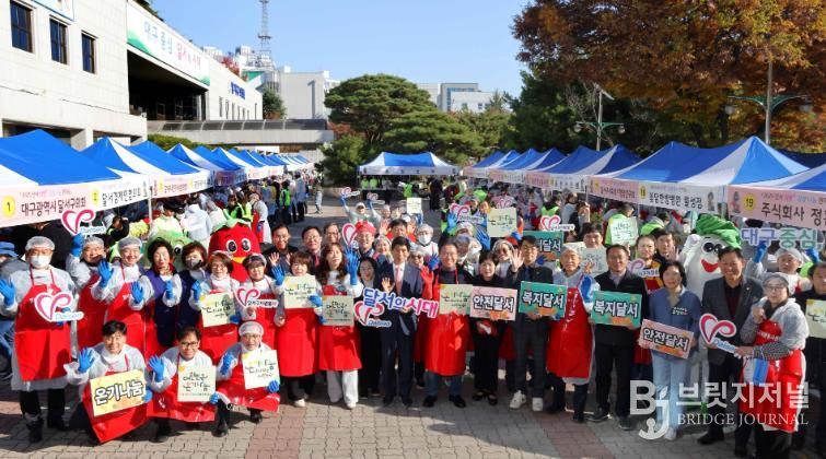 브릿지저널 김진석 기자 | 대구 달서구는 15일, 달서구자원봉사센터 주관으로 '2025 희망+ 김장나눔 한마당'을 달서구청 앞마당에서 개최했다.