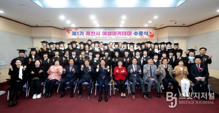 브릿지저널 김경미 기자 | 제1회 제천시 여성아카데미가 지난 11월 17일 오후 2시, 제천여성문화센터 1층 강당에서 종강식을 열고 5개월간의 교육 일정을 마무리했다. 이번 종강식에는 교육생 50명을 비롯해 관계자와 내빈 등 60여 명이 참석했으며, 제천시여성단체협의회(회장 김춘남)가 주관했다